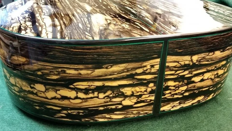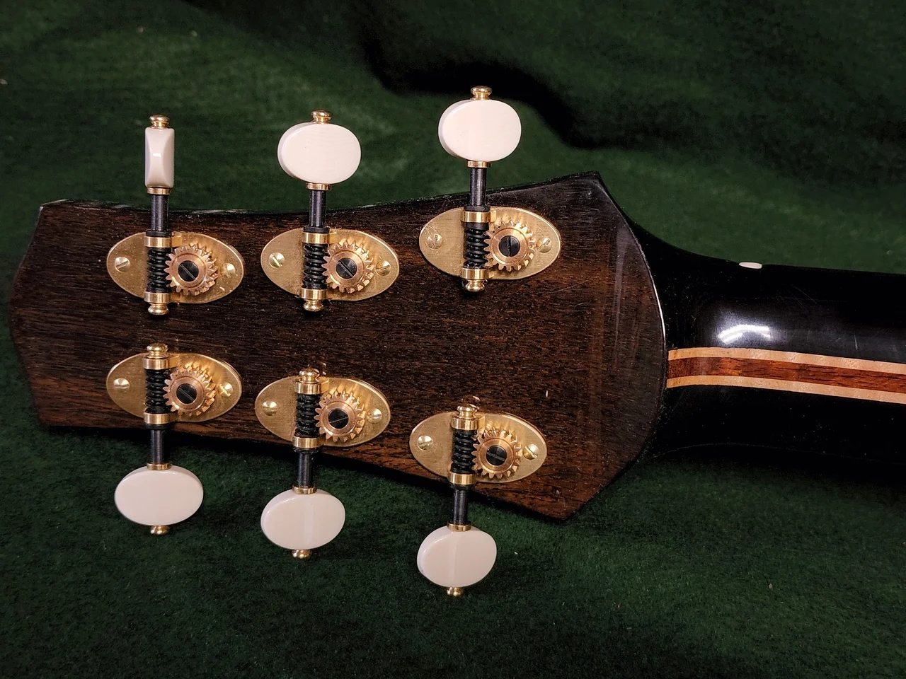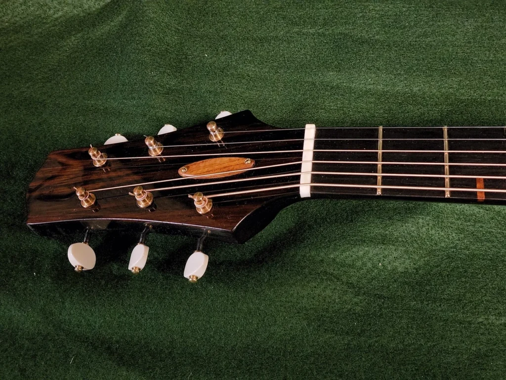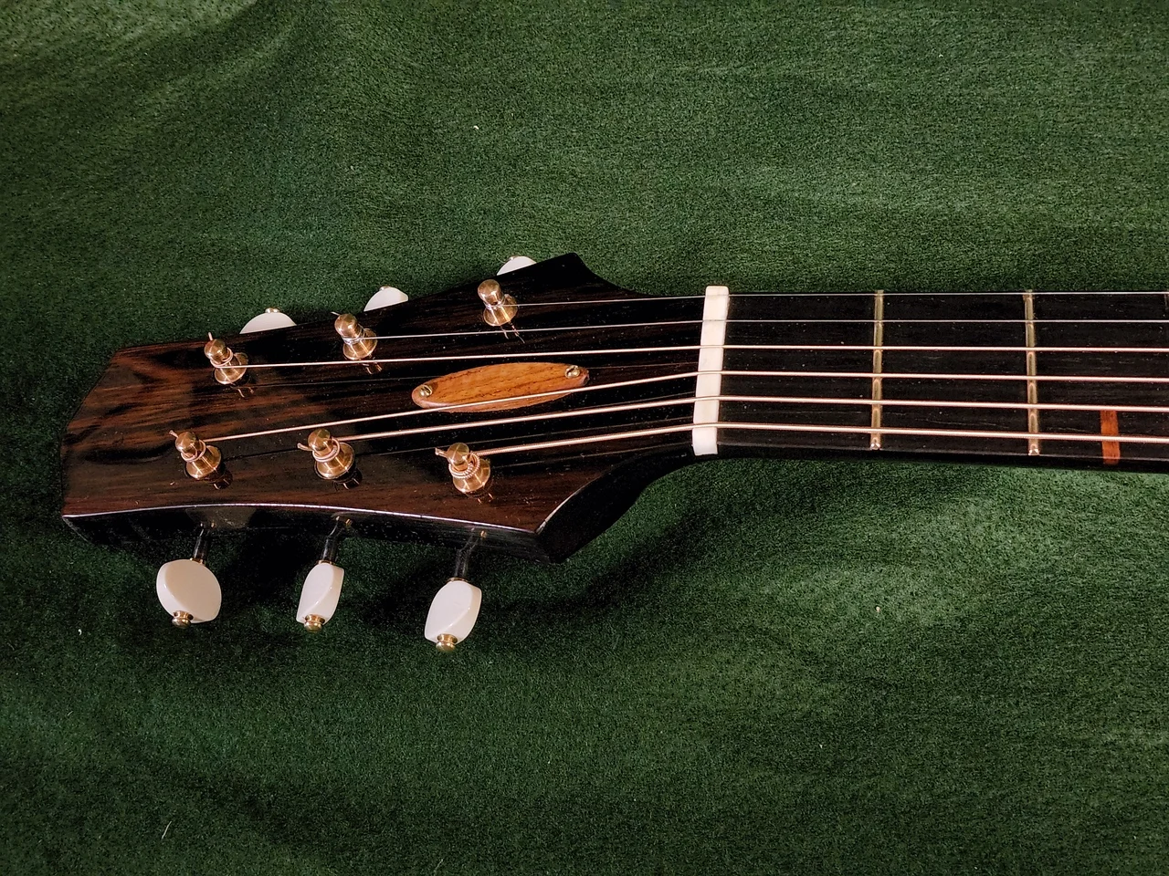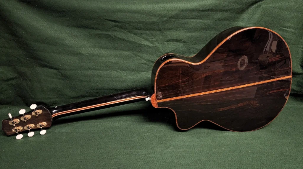 This particular example is made with Black and White Ebony and has an Englemann top. The neck is curly maple.